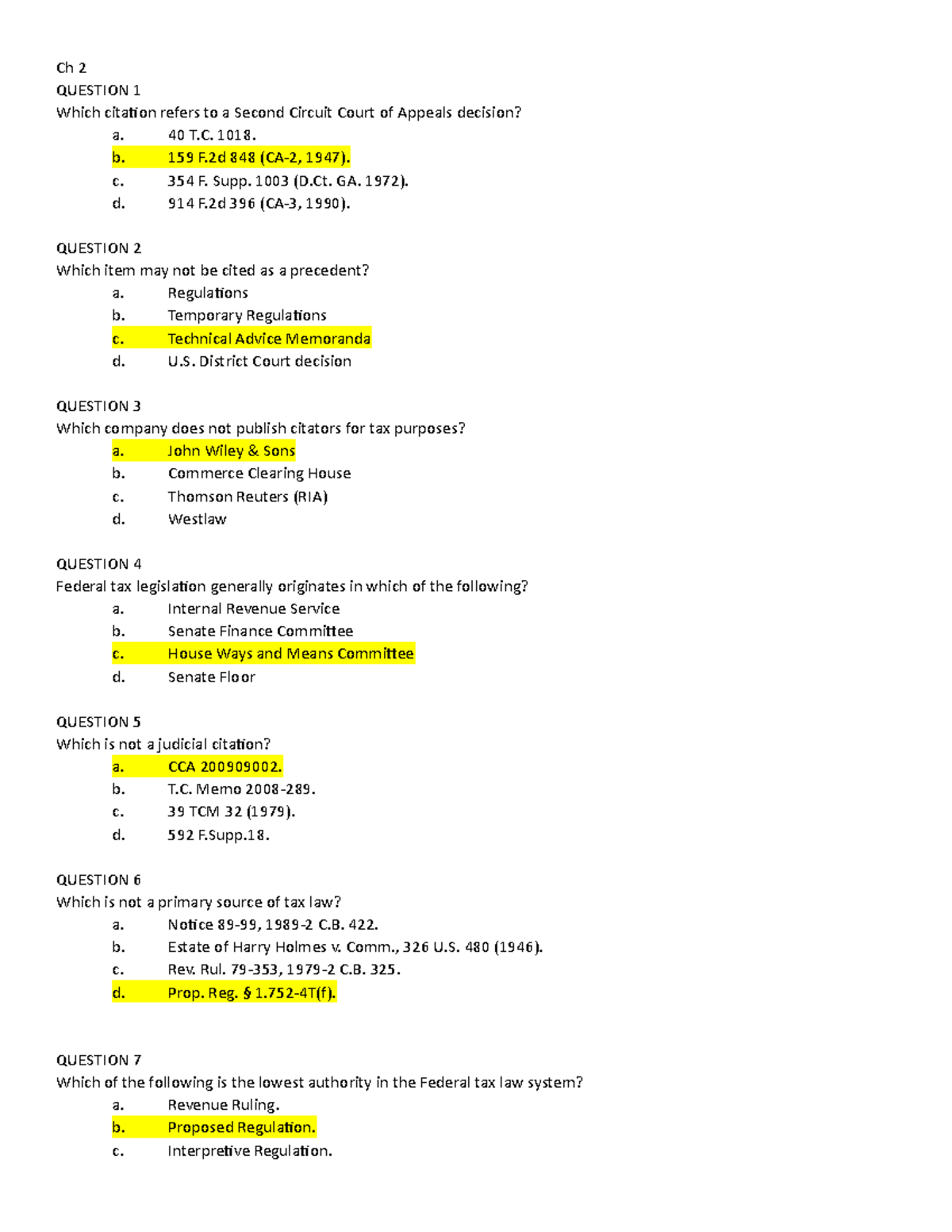Acc 4301 Ch 2 Quiz Quiz Ch 2 Question 1 Which Citation Refers To A Second Circuit Court Of Studocu